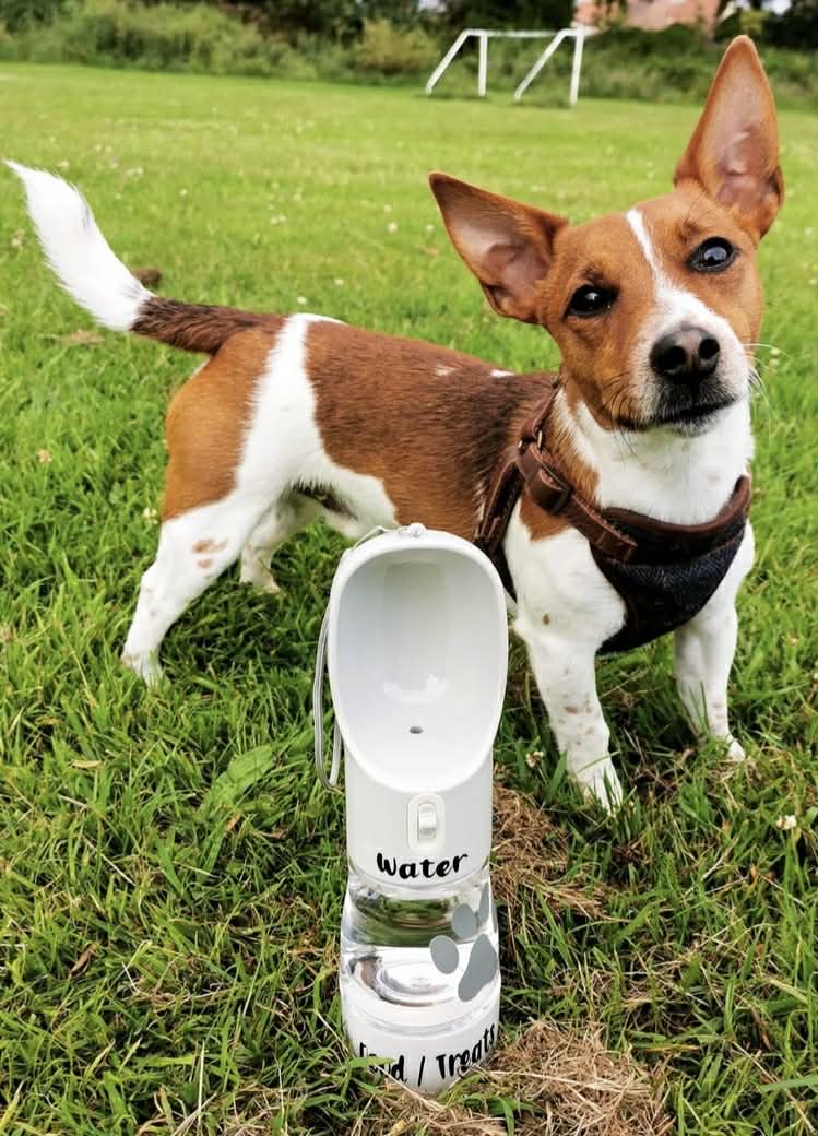 Designed with convenience in mind, this clever all-in-one bottle features a built-in drinking bowl at the top, water container in the middle and a separate compartment at the bottom for food or treats — perfect for keeping your dog hydrated and happy wherever you go.
